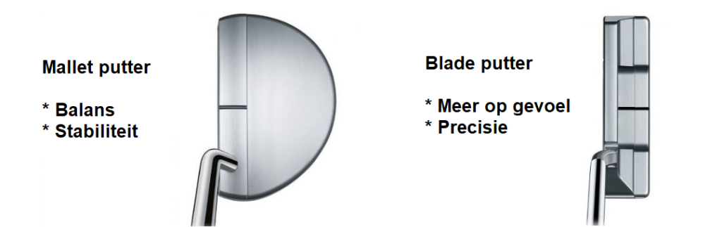 De modellen putters in golf zijn zeer divers en er wordt gesproken in verschillende termen. Zo hoor je vaker de blade, mallet, 2 ball of belly putter. Alles heeft te maken met de vorm van de putter en de gewichtsverdeling. Zo kent de mallet putter een betere gewichtsverdeling en zal putten makkelijker gaan dan met een blade putter. Een blade putter geeft je echter meer gevoel.
